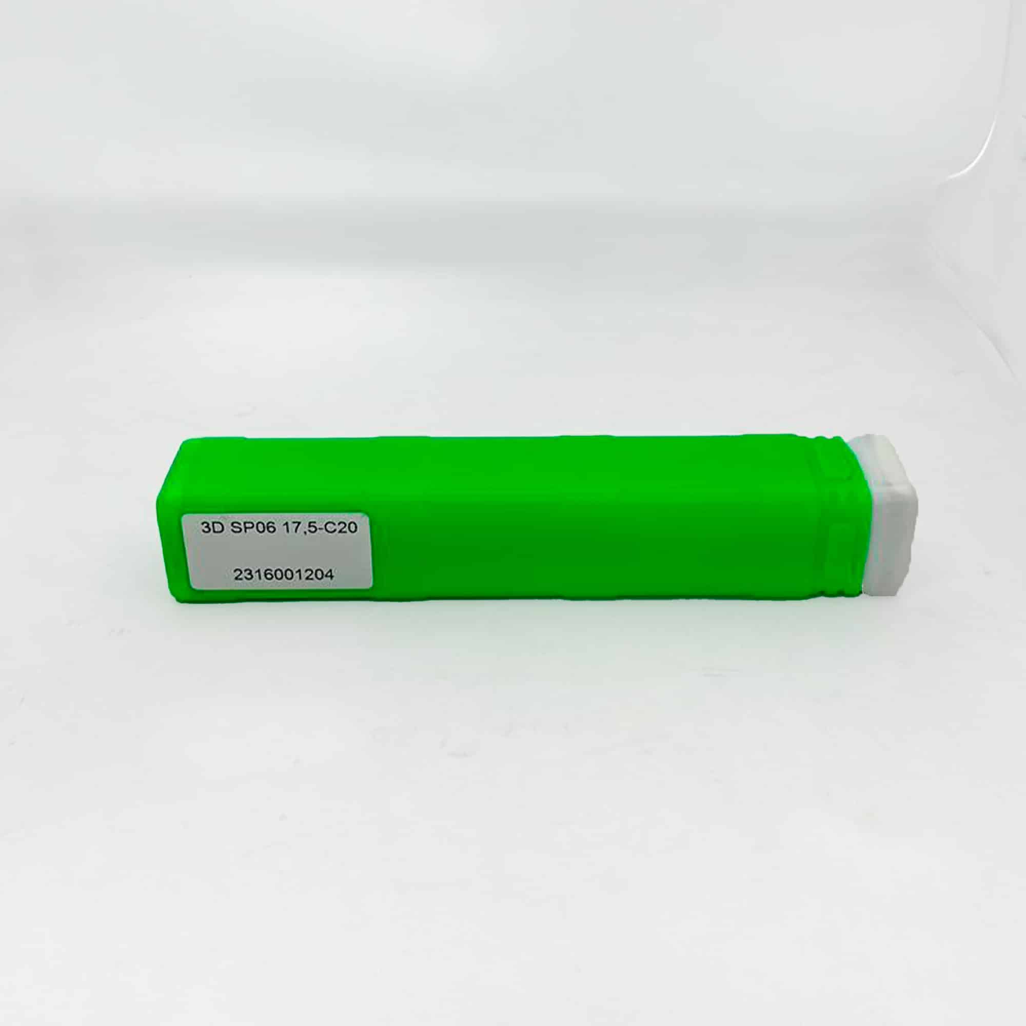 O corpo da broca apresenta ranhuras helicoidais otimizadas para facilitar a saída de cavacos, mesmo em operações profundas.